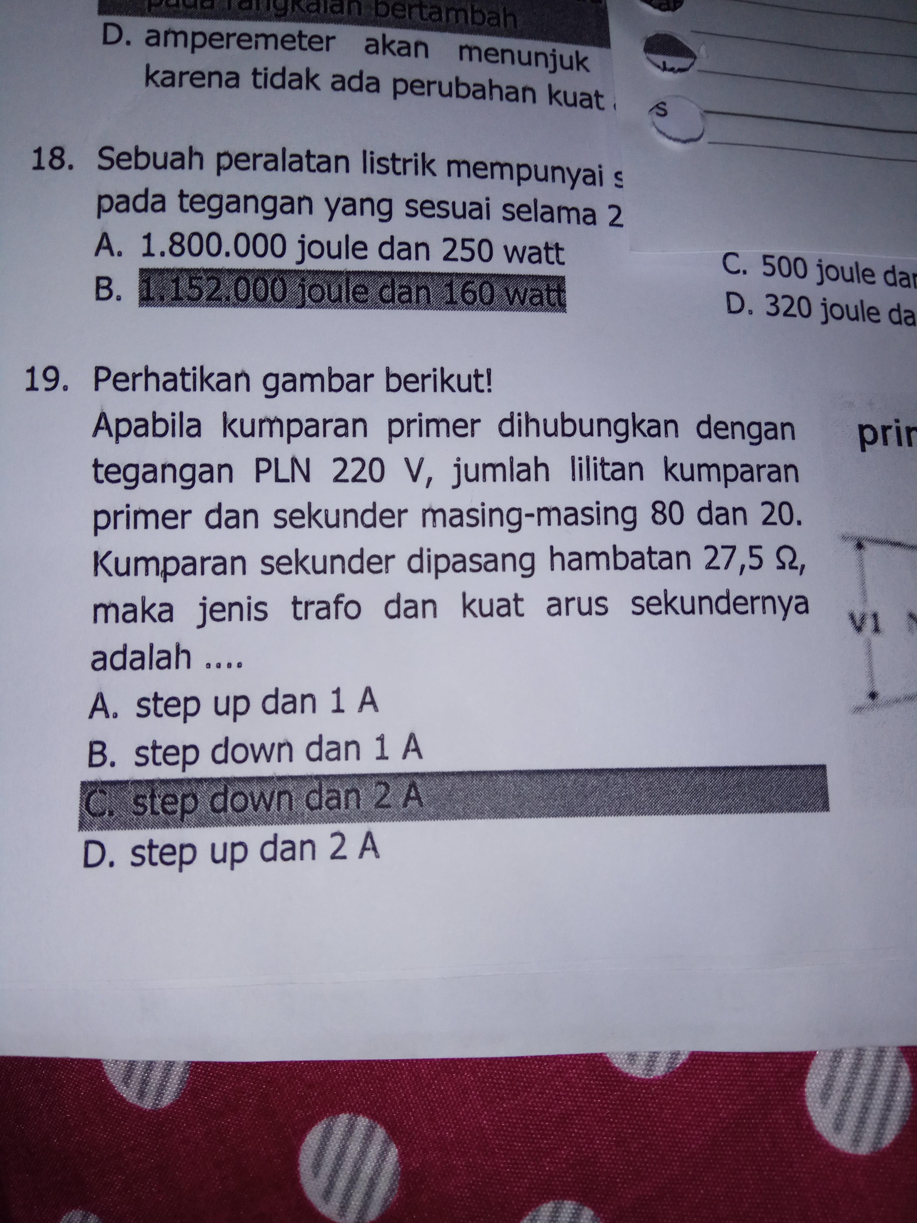 Tegangan primer selalu lebih besar dari tegangan sekunder, (vp > Ditanyakan adalah kuat arus primer (ip) dan sekunder (is), untuk menyelesaikan soal ini, kita perlu mencari daya primer dan sekundernya dahulu. C) kuat arus primer lebih daripada kuat arus sekunder. Namun pada beberapa desain gulungan sekunder dibuat sedikit lebih banyak untuk mengkompensasi kerugian. Bentuk dan simbol trafo step up ditunjukkan pada gambar 8.10.